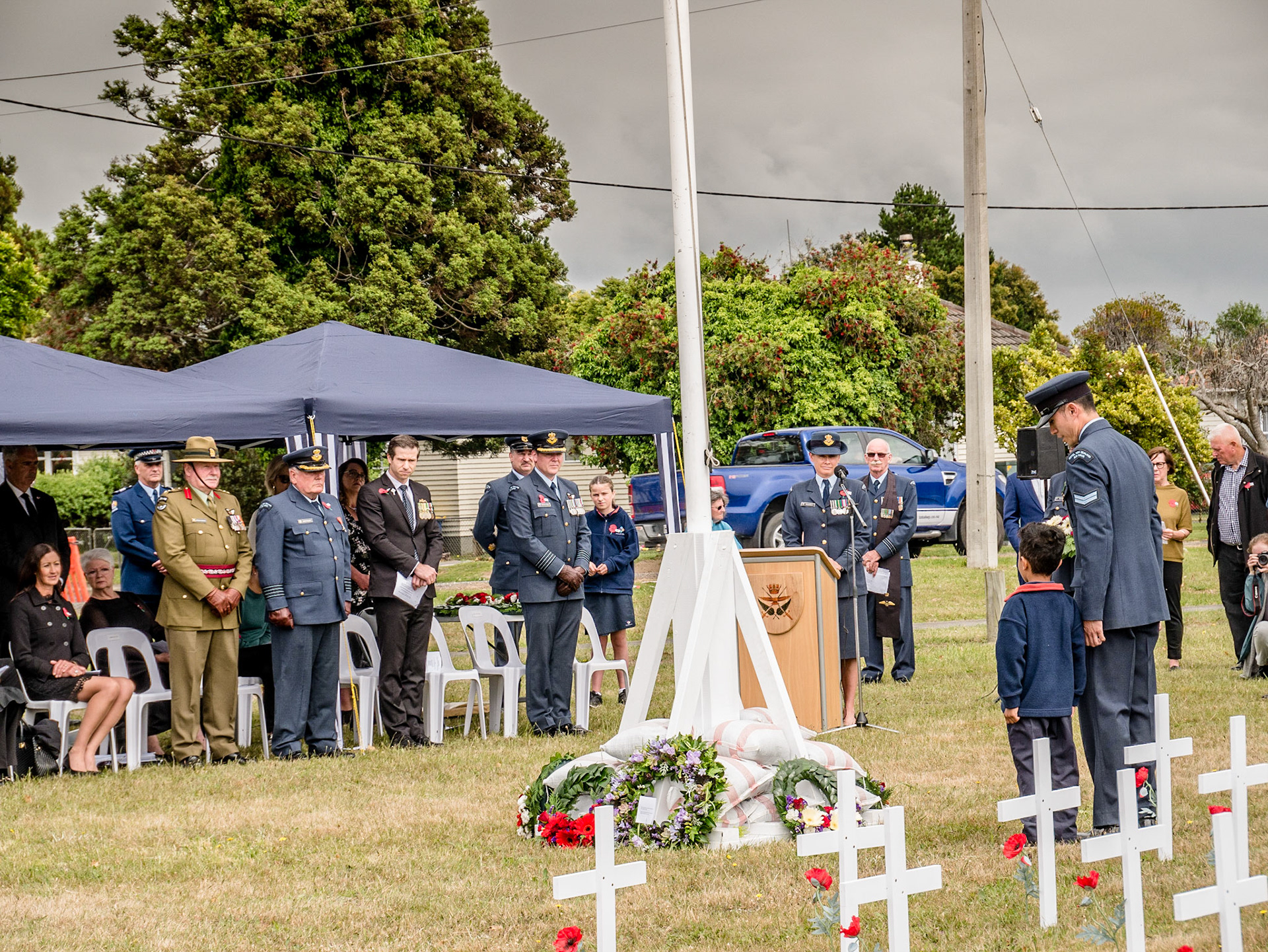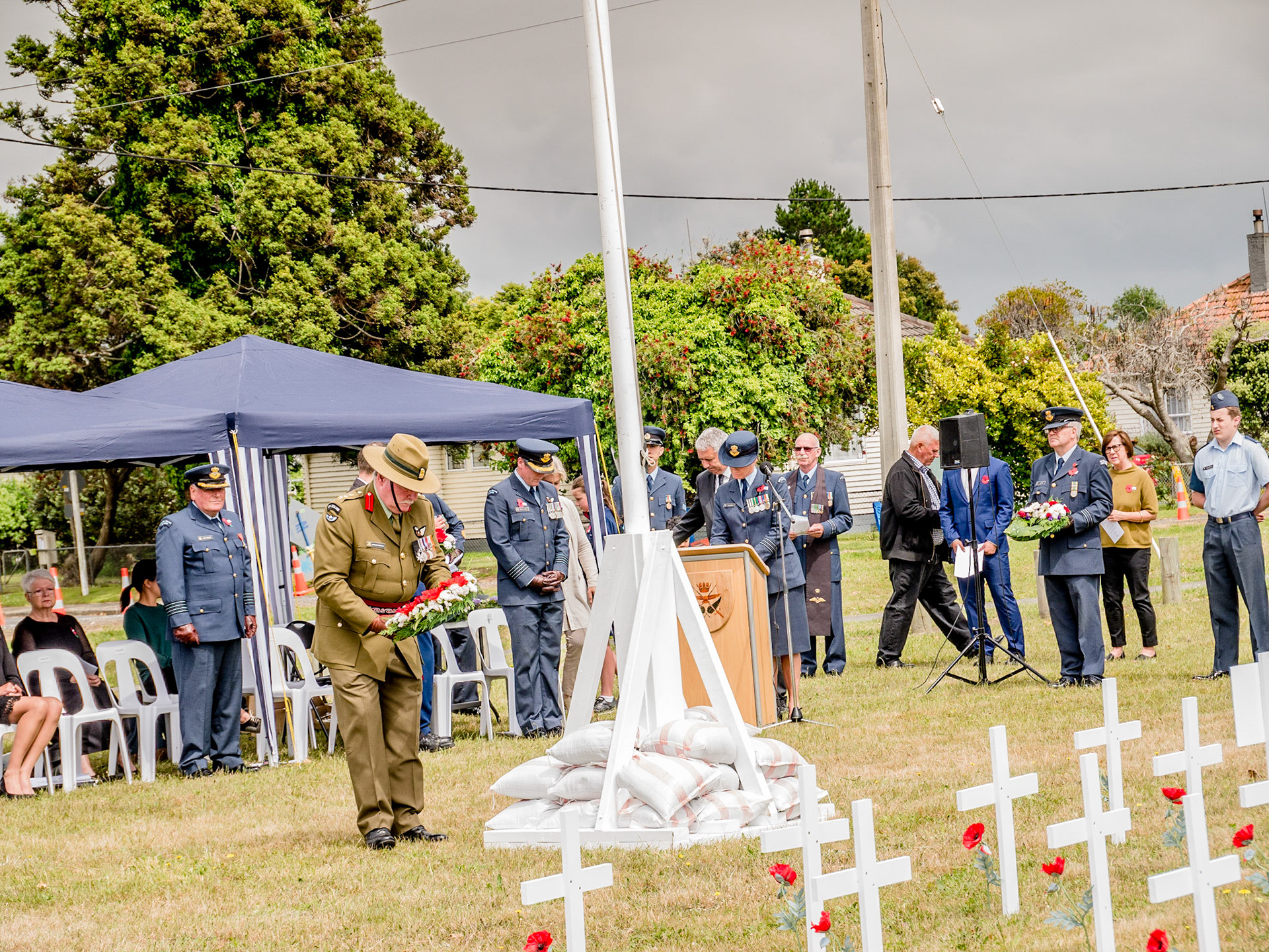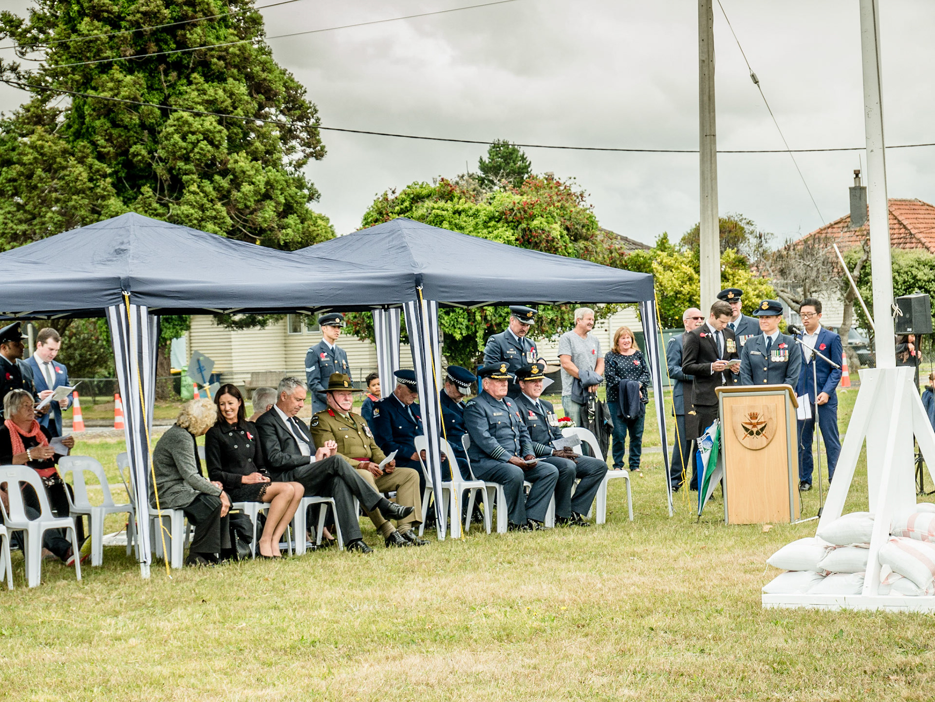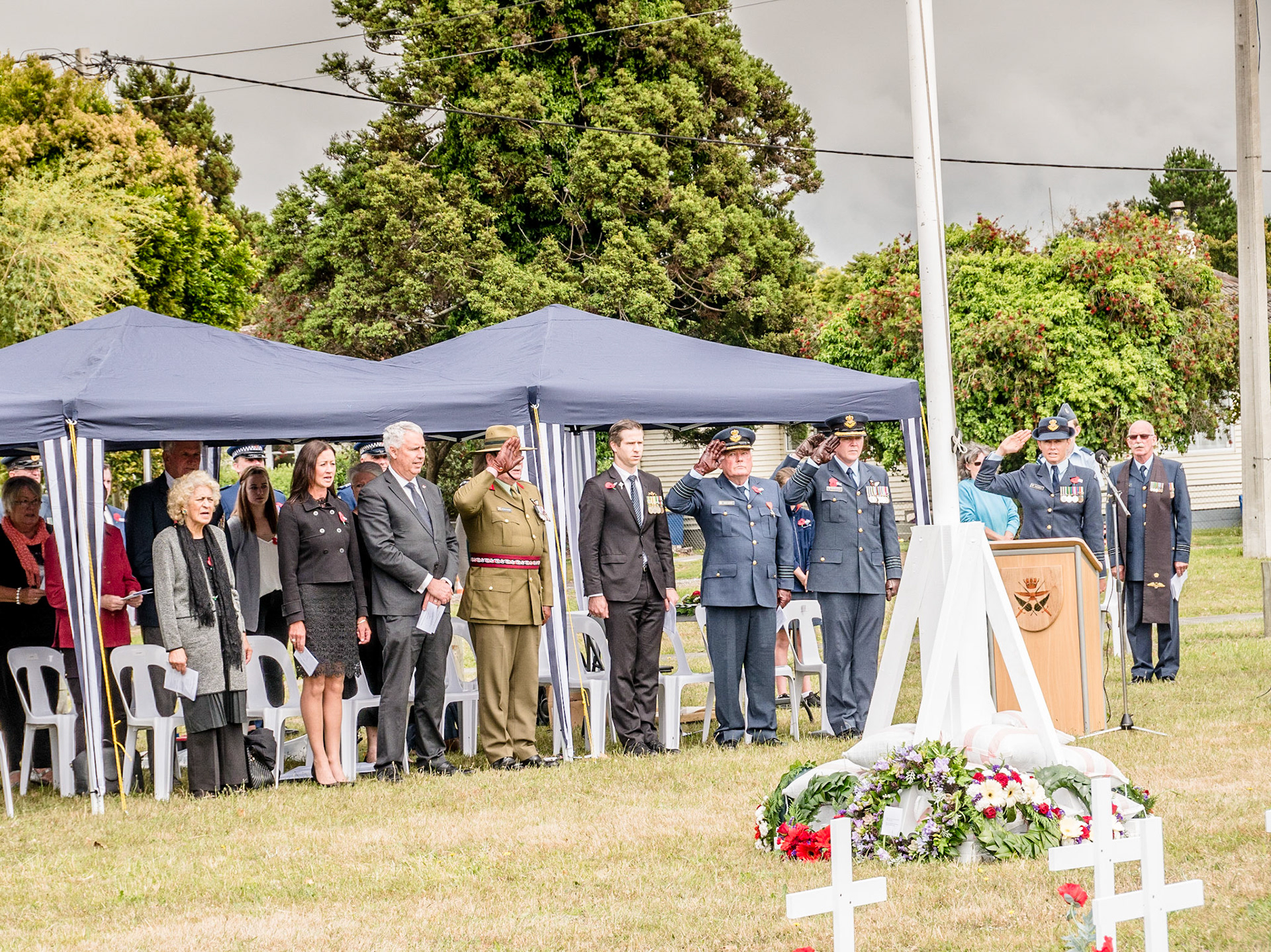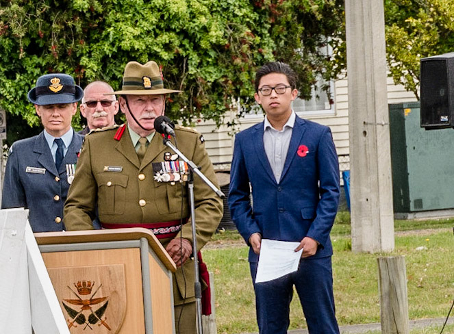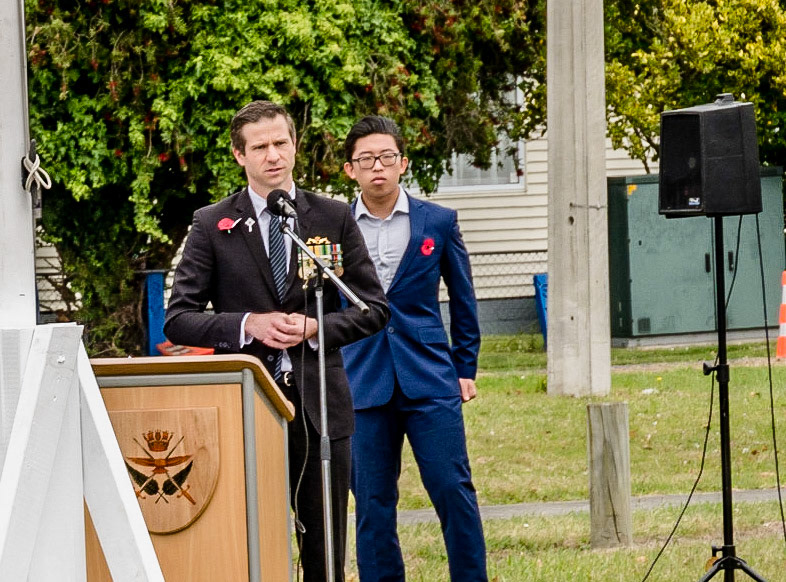 Armistice Day Centenary 11 November 1918-2018. Service at Whenuapai Airbase with Chris Penk, Member of Parliament for Helensville, Colonel Steve Franklin and Group Captain Craig Walker