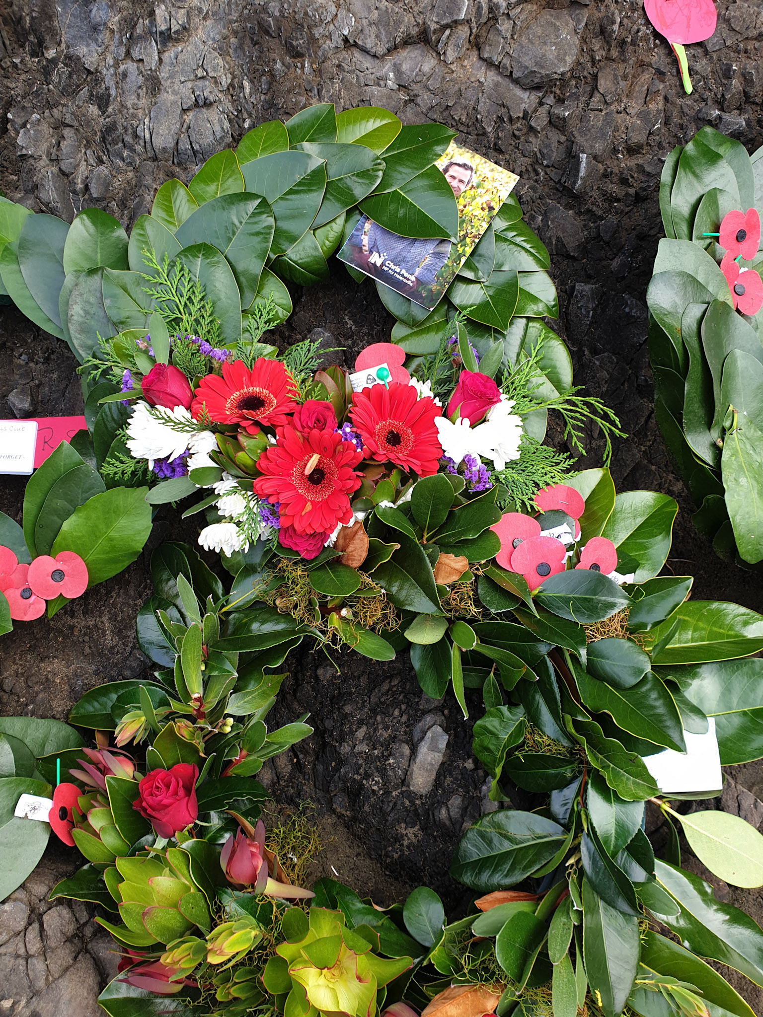 Anzac day 25 April 2019, Piha Beach. Wreath laid on behalf of Chris Penk